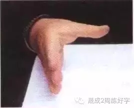 3.扭曲型:拇指扭曲,以食指顶著笔杆。