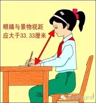 1.头正 要求头勿左右倾斜,下颔微收,舌尖微抵上腭(有助于凝神静虑、集中思想)目光注视笔尖,眼睛距纸1尺左右。有的人写字时,头歪向一边或将一只手托着头,不仅很难将字写端正,而且容易损伤视力。
